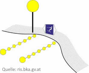 RECHTSVERORDNUNGWasserski-Start-und Landegassen Start-und Landegassen für Wasserski auf Seen sind am Ufer durch Hinweiszeichen und am Wasser durch gelbe Bojen gekennzeichnet. (Start-oder Landegassen). Länge 200 m, Breite mind. 40 m. Vorderste Bojen haben grösseren Durchmesser mind 20 cm). Der Betrieb einer Gasse wird durch einen gelben Ball mit mind. 1m Durchmesser, der am Ufer in 3m Höhe angebracht werden muss, gekennzeichnet. |