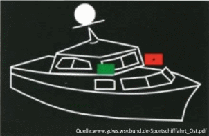 LICHTERFüHRUNGLichterführung Im Zeitraum von Sonnenuntergang bis Sonnenaufgang sowie bei schlechter Sicht müssen Fahrzeuge und schwimmende Anlagen Lichter zeigen, die ununterbrochen und gleichmäßig strahlen. A) Verbotene Lichter und Zeichen: 1. Andere als die in dieser Verordnung vorgesehenen Lichter und Zeichen. 2. Zur Verständigung dürfen jedoch auch andere Lichter verwendet werden, sofern dies zu keiner Verwechslung führen kann. B) Ersatzlichter: Wenn Lichter ausfallen, müssen unverzüglich Ersatzlichter gesetzt werden. Hierbei kann starkes Licht durch ein helles Licht und helles Licht durch ein gewöhnliches Licht ersetzt werden. Die Lichter mit der vorgeschriebenen Stärke sind so schnell wie möglich wieder zu setzen. |
